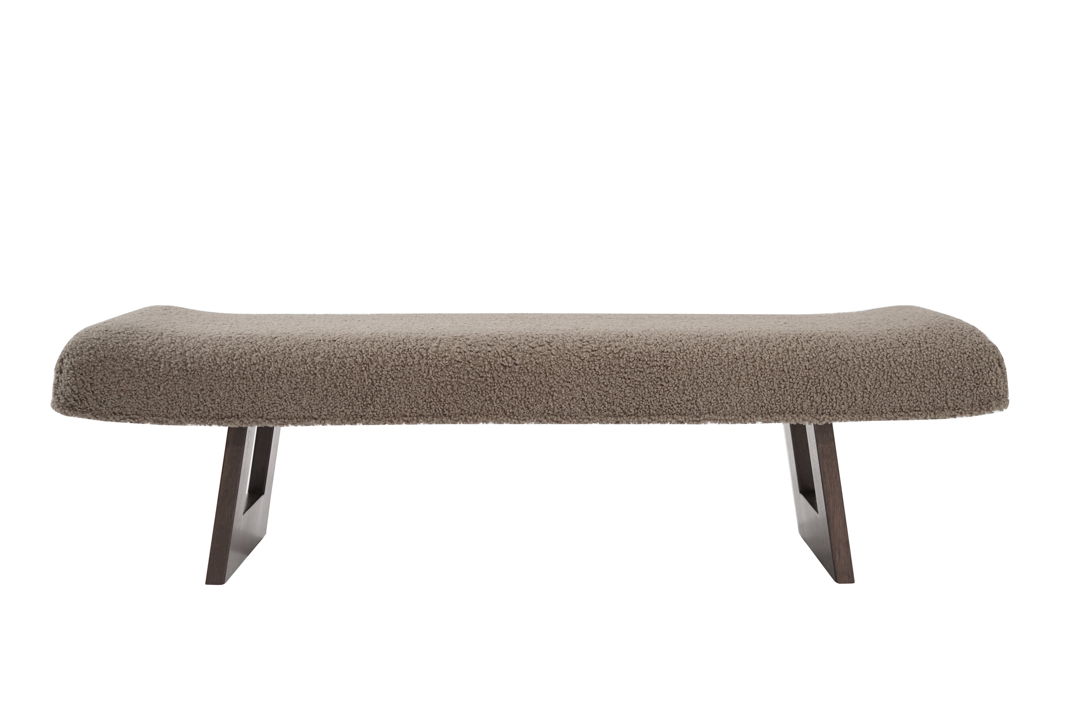 "The Zen Bench" features upward-curving ends that evoke a harmonious balance, inviting relaxation and contemplation. The angled walnut leg supports add a touch of sophistication and further reflect the influence of Asian design principles.