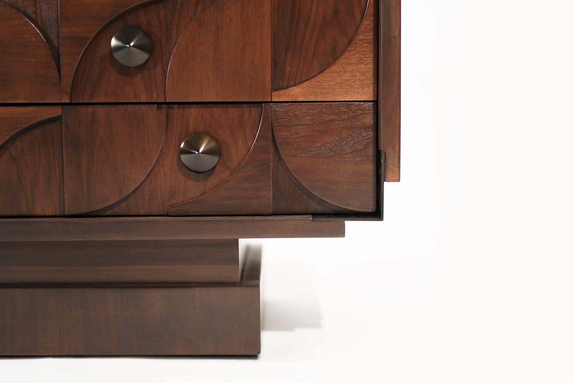 Brutalist Sculptural Walnut Dresser with ORB Accent Corners and Hardware, C. 1970s