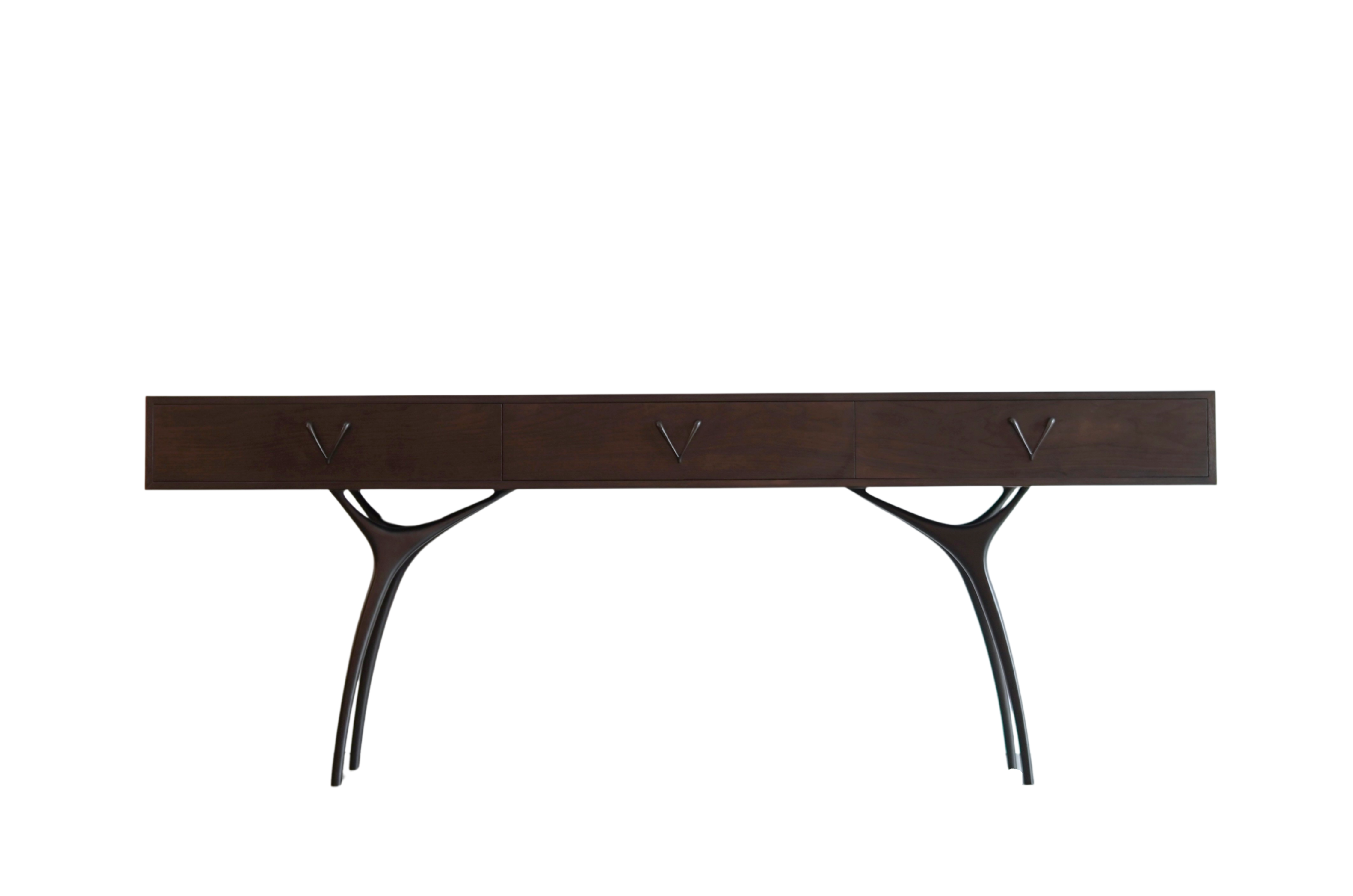 The Crescent Console Table by Carlos Solano is a statement of refined craftsmanship and sculptural elegance, inspired by mid-century modern design principles. Featuring solid brass casted legs available in brass, nickel, bronze, or our signature ORB finish, this console table strikes the perfect balance between artistry and functionality. The console’s case top, adorned with dual drawers and wishbone-shaped hardware, introduces a subtle sense of playfulness to its sophisticated silhouette, making it a timeless addition to your project entryway, living, or dining space.