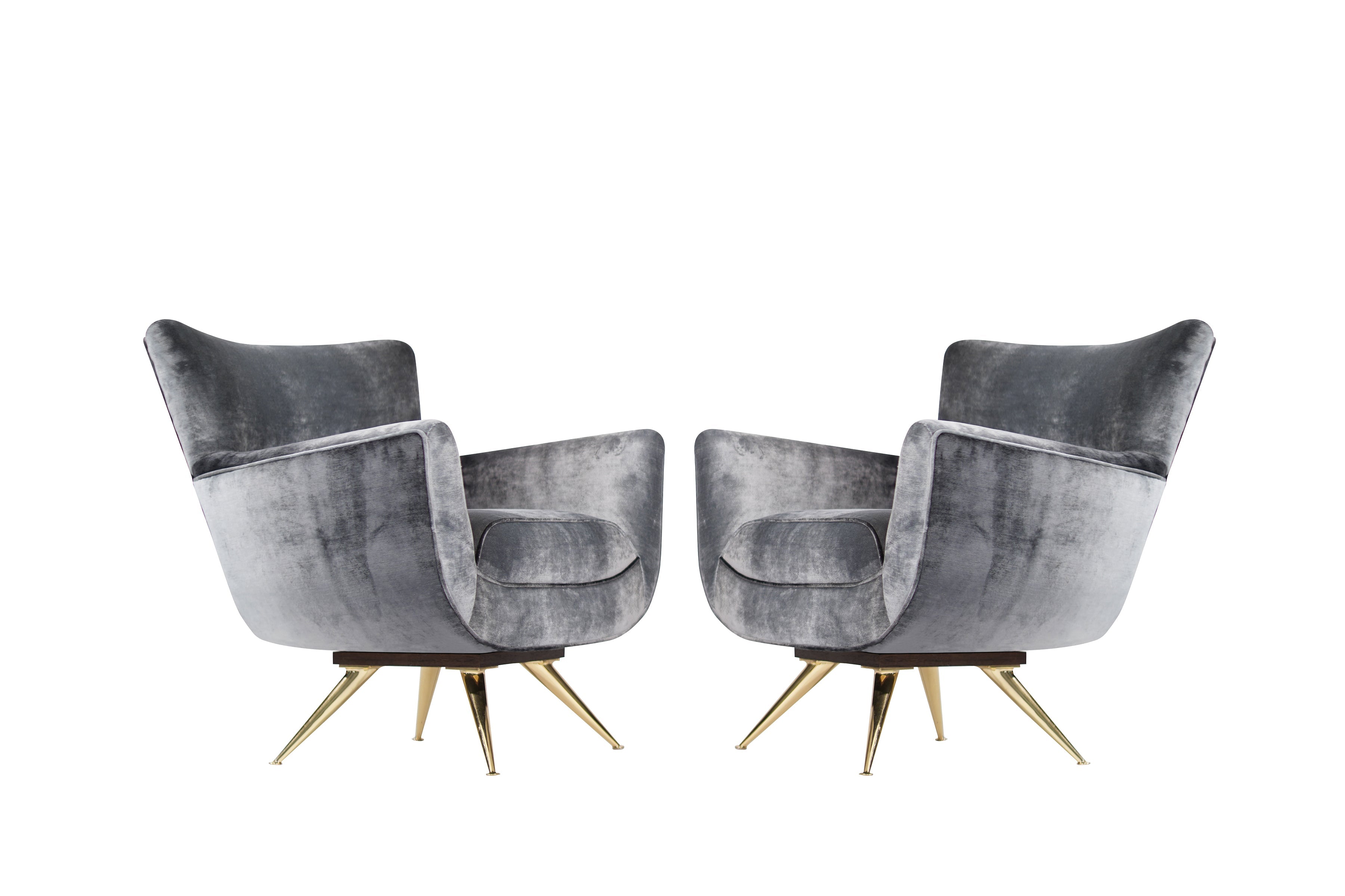 Henry Glass Swivel Chairs in Distressed Silver Velvet, C. 1950s