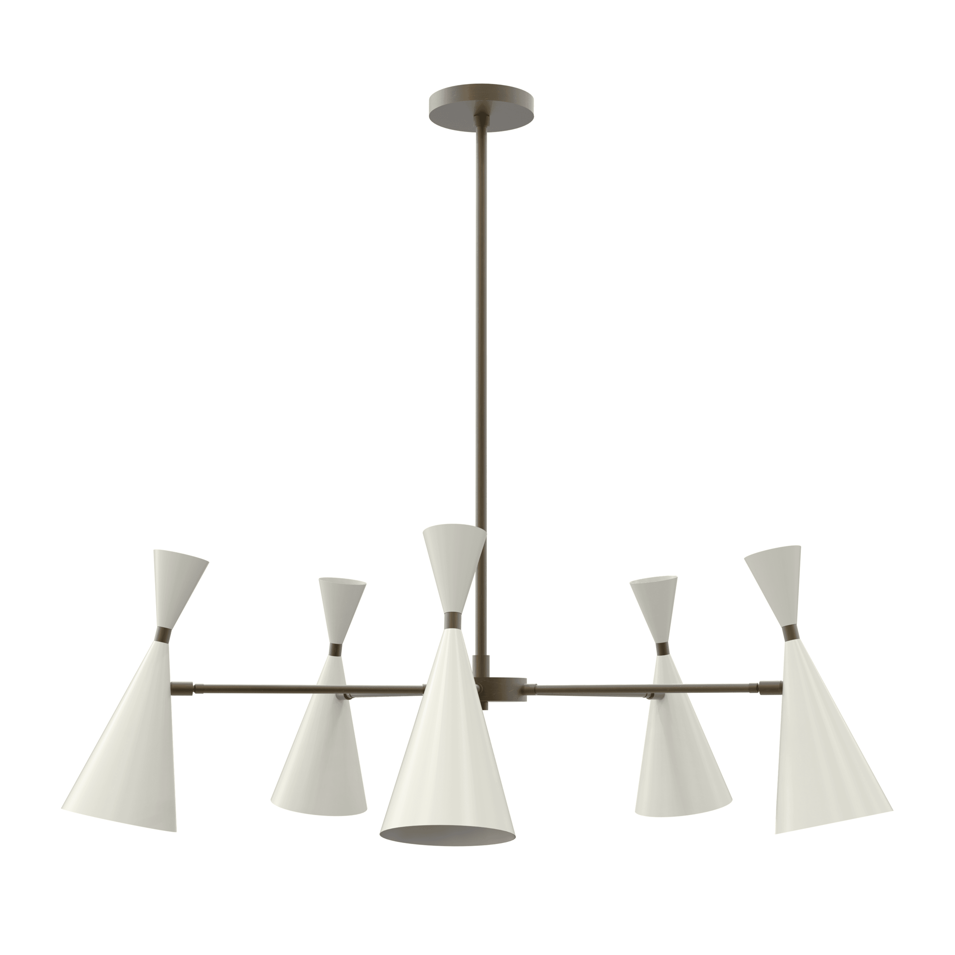 Our Petite Monolith fixture is a more moderately scaled 5-shade version of our wildly successful Monolith chandelier. This go-anywhere design plays well in both modern and traditional interiors.