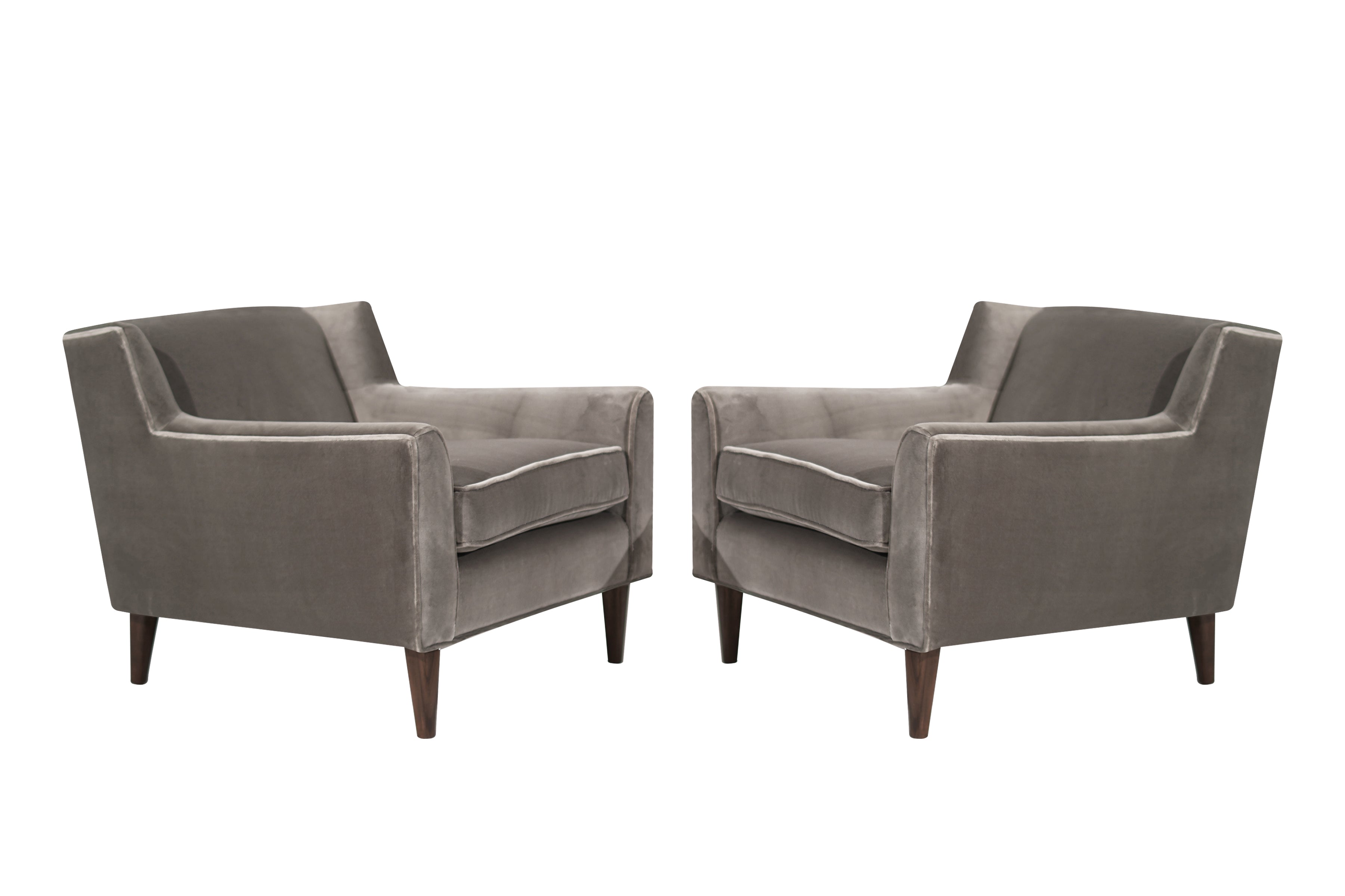 Set of Lounge Chairs in Grey Alpaca Velvet by Edward Wormley, circa 1950s